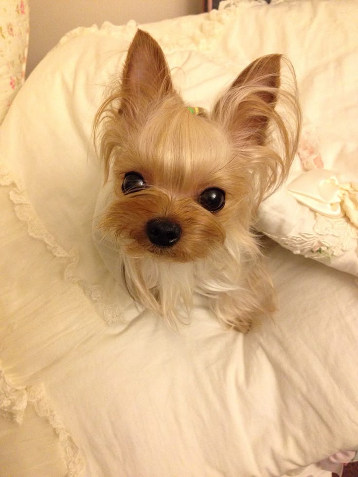 Шерсть йорков редко выцветает до чисто-белого цвета – но это возможно! Все зависит от генов и удачи.