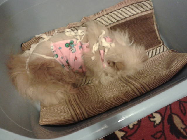 Постоянно лижет колтуны, пытается их откусить. Появляются постоянно намокшие места, в которых отлично размножаются бактерии, а из-за мокроты шерсть сваливается еще больше; - комок шерсти не дает возможности кожному покрову проветриваться, он запревает, и появляются язвы, раны на коже животного;