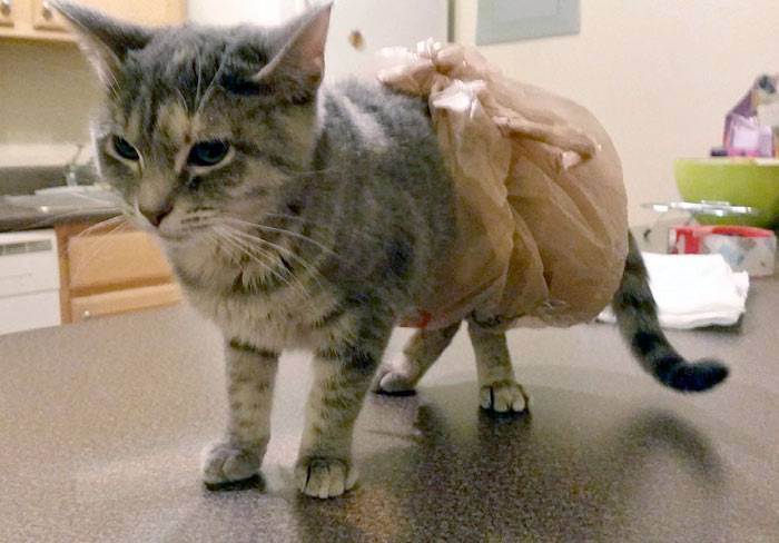Кошка сломана лапа; тащит ноги.