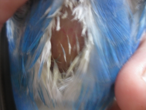 - на хвосте, под крылом или шее — могут проявляться болезненные ощущения при пальпации, дискомфорт, вялость пернатого, потеря аппетита.