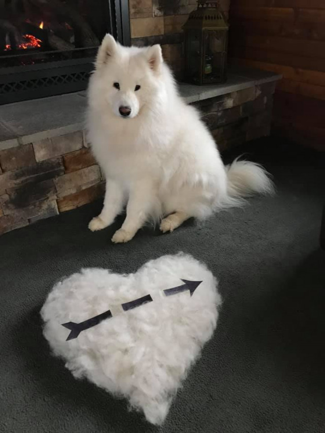 Самоедская собака очень сильно линяет.