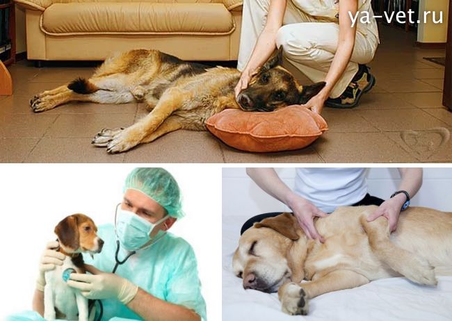Эта информация поможет ветеринару быстрее диагностировать патологию. - Во-вторых, по возможности животное нужно уложить на ровную поверхность, подложив под голову что-то мягкое (во избежание травм при ударе). Желательно укладывать собаку на правый бок — так ей будет легче дышать.