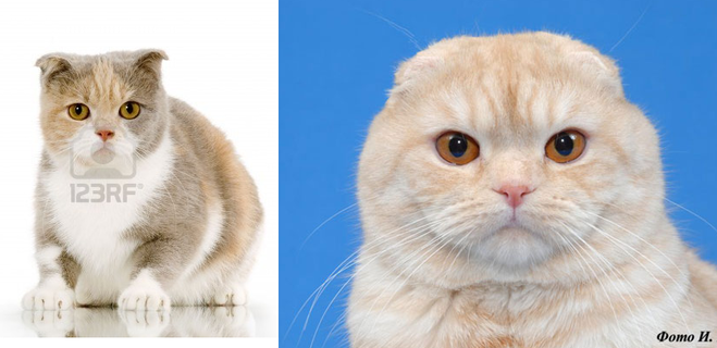 Какие уши у вислоухих котят. Что делать, если кошка прижимает уши? Окрасы шотландских кошек