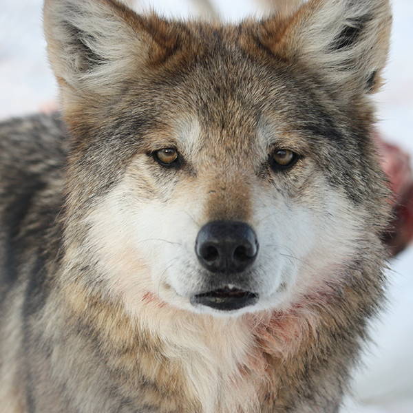 Морда волка — это динамическое отображение визуальных сигналов. Скрученные губы доминирующего волка, оскаленные зубы, пристальный взгляд и торчащие горизонтально уши говорят другим волкам отступить.