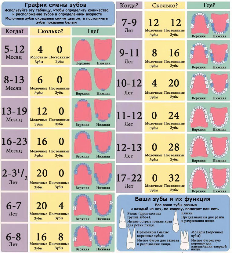График прорезывания зубовКогда молочные зубы прорезываются (прорезываются) и выпадают?