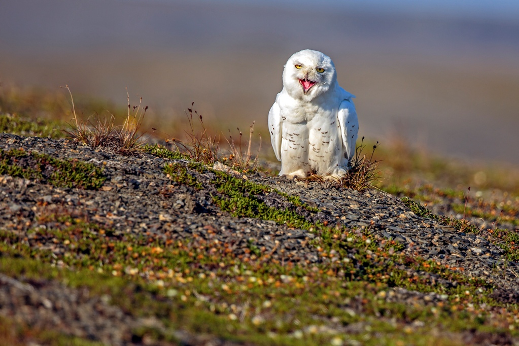 Еще одна птица, которая может жить в тундре, – это полярная сова. Снежные совы используют свое почти полностью белое оперение, чтобы слиться со снегом, чтобы хищники не могли их заметить. У обоих полов есть черные пятна на оперении, но у самцов, как правило, меньше черных пятен, а у самок — больше. Издалека они могут сидеть на земле и казаться камнем или комком снега.