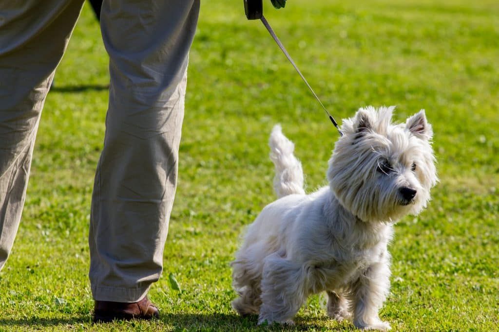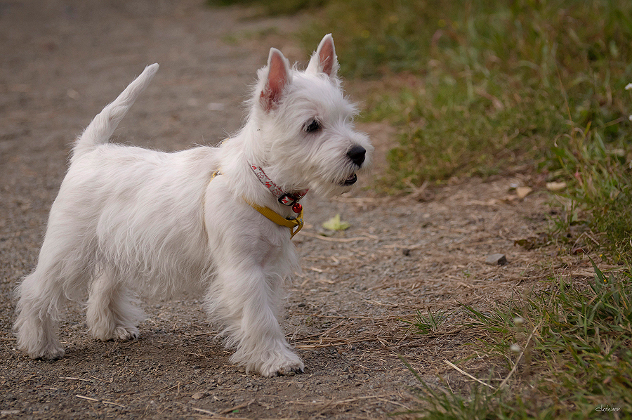 Не спускайте животное с поводка: вест-хайленд-уайт-терьеры плохо управляемы, к тому же обожают раскапывать клумбы и валяться в падали.