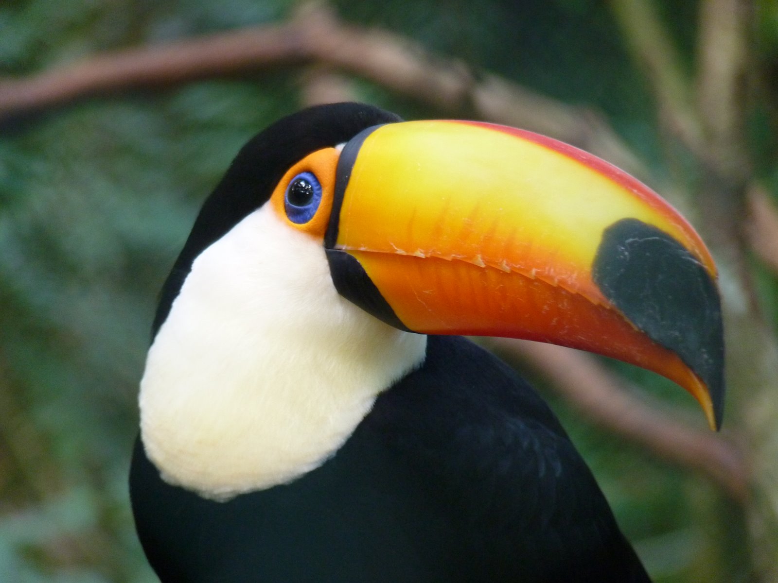- Токо-тукан — самый узнаваемый вид туканов с его черно-белым оперением и оранжевым клювом.