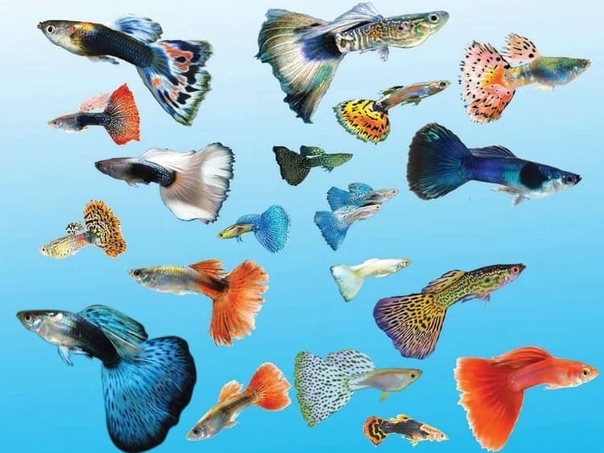Все виды гуппи— это искусственные селекционные разновидности обычных, их насчитывают более 60. Наиболее частые типажи, которые можно встретить в продаже это гуппи голубые с желтыми, красными хвостами и таких пород, как германский красный блондин, красный фейерверк, берлинский золотой, томат и т. д.