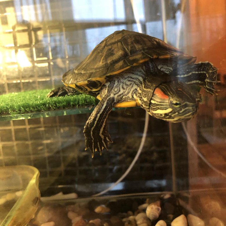Для взрослой красноухой черепахи нужен аквариум на 100—150 литров.
