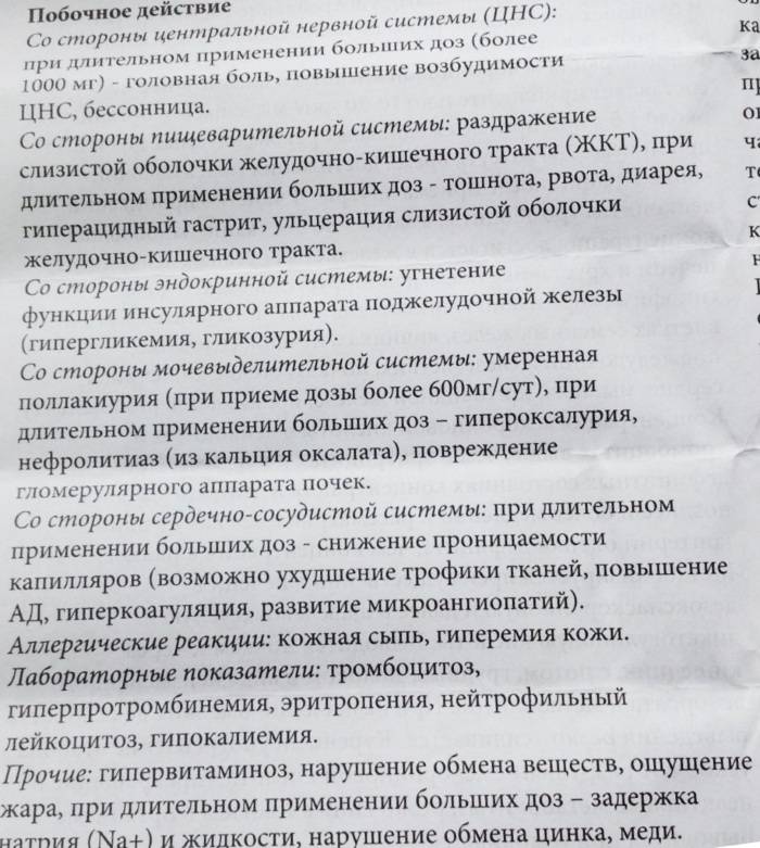 Противопоказания: не применять при гипервитаминозах. Не применять вместе с солями трехвалентного железа и препаратами йода.