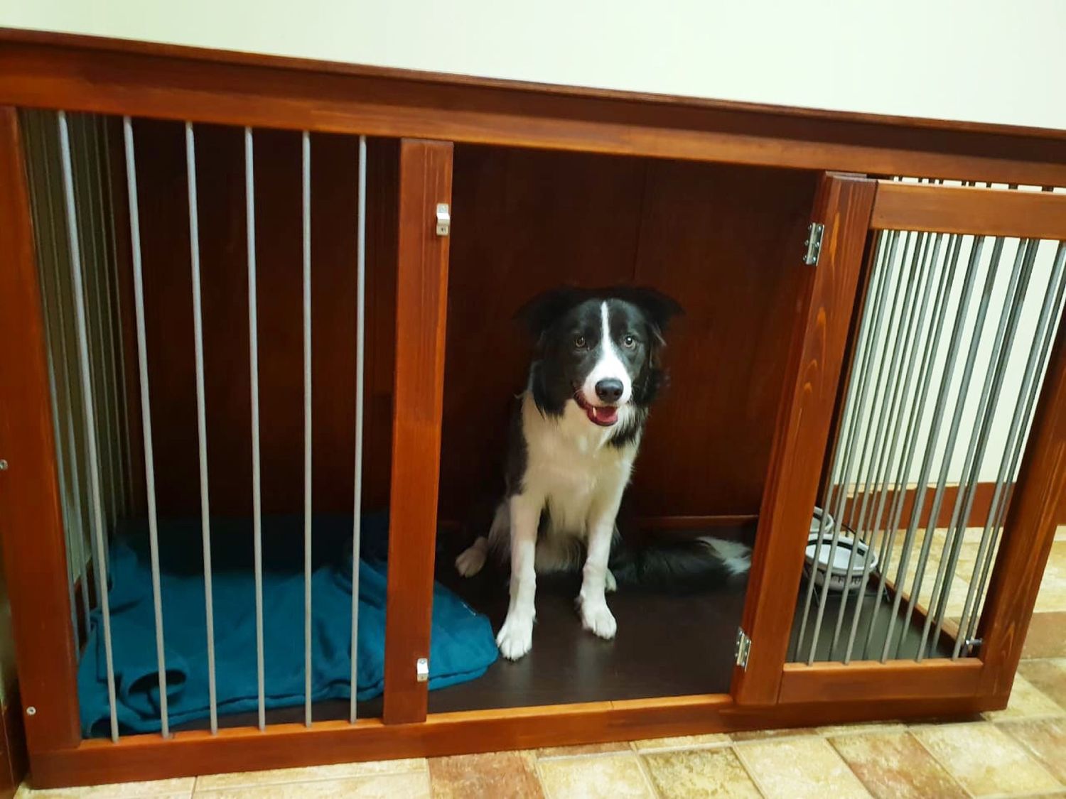 На полу укладывают любую теплую подложку, чтоб животному было находится внутри заграждения. Устанавливают спальное место и емкости с кормом.