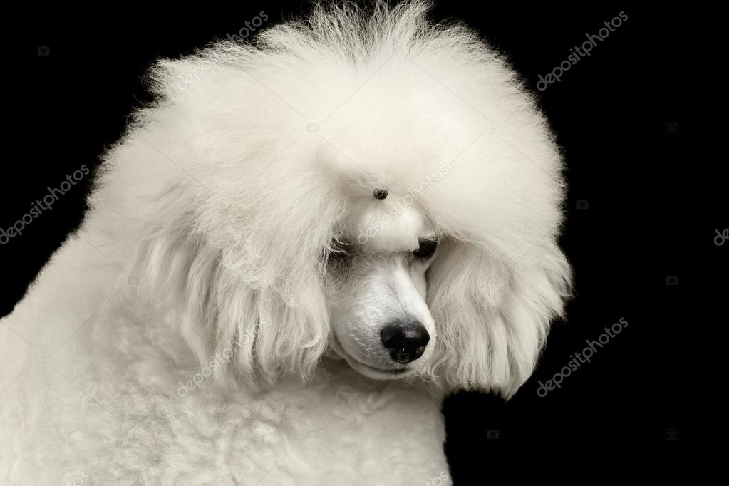 Белые пудели тоже довольно распространены, имеют ряд особенностей. В основном щенки рождаются с кремовыми или абрикосовыми участками на груди, ушах, нижней части конечностей, но с возрастом шерсть становится белой. Кожа розовая или трюфельная (пятнистая). Мочка носа, обводка глаз, когти чёрного цвета, глаза всегда карие. Щенки могут рождаться с розовыми носами, подушечками лап, но с возрастом нос у них темнеет. Бывает, белые щенки рождаются у собак с цветной шерстью, но такие щенки считаются полноценными, и в будущем они не дадут цветного потомства.