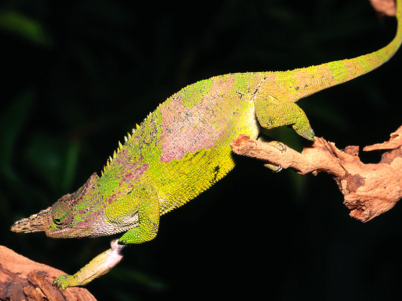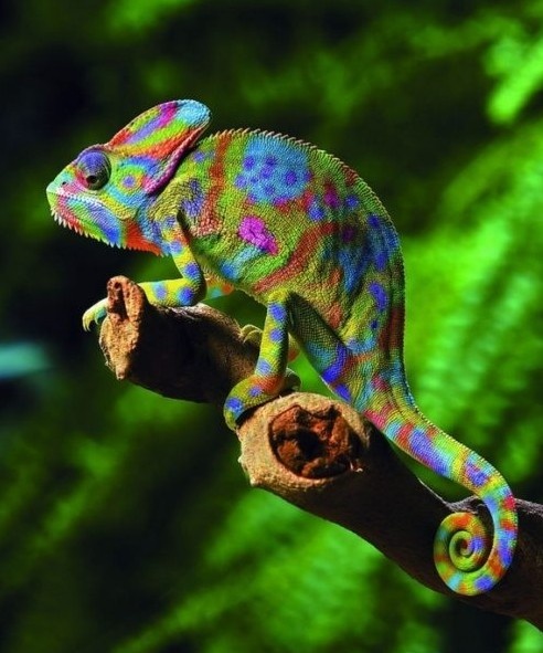 Хамелеон является иконой адаптации среди других животных. Ведь только он может менять цвет в зависимости от окружающей среды. Ученые предполагают, что такое разнообразие цветов обусловлено их сильной общительностью – с помощью цветовой гаммы они сигнализируют о своем настроении и прячутся от врагов.