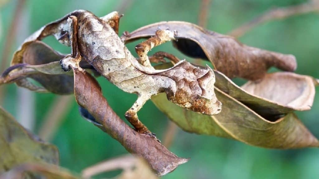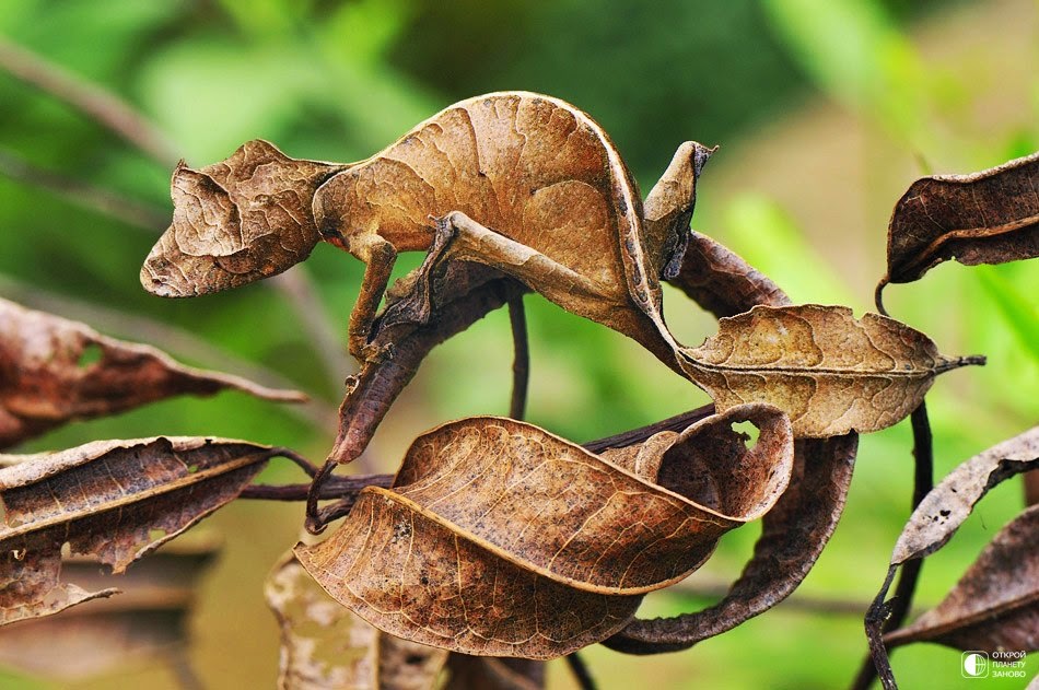 Еще одно его название – сатанинский геккон. Живут эти существа в тропиках Мадагаскара. Встретить их очень трудно, так как их внешний вид очень напоминает сухие листья, в которых они предпочитают обитать. Их окрас, структура кожи и даже форма тела позволяет им прятаться в листве от своих врагов.