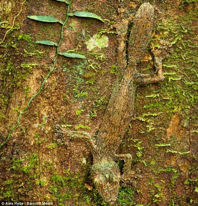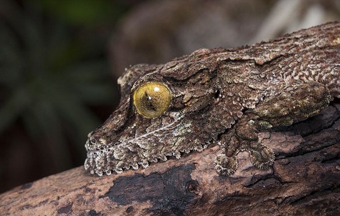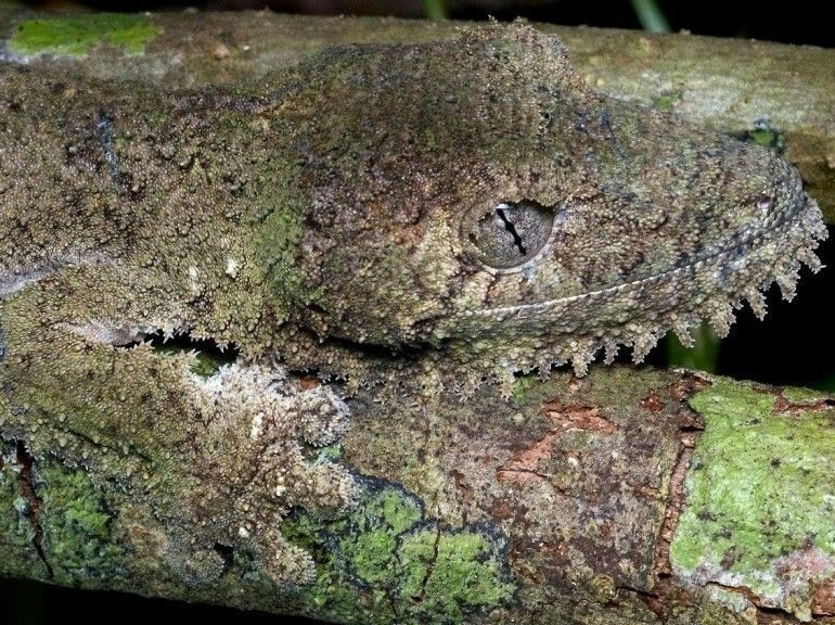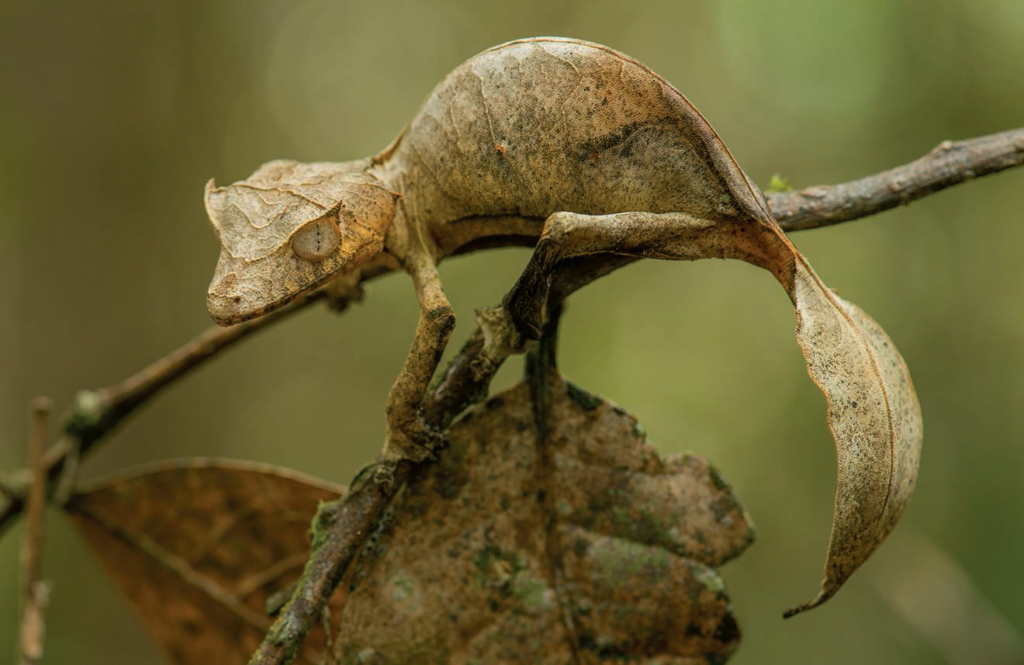 Листохвостый геккон часто прячется среди листьев. Его окраска напоминает засохший листок, оставшийся на ветке.