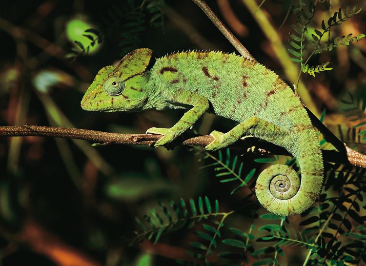 Иногда хамелеоны меняют свой цвет, когда злятся или боятся. Чтобы изменить свой цвет, хамелеон регулирует слой специализированных клеток, лежащих в основе его кожи. Другие меняют цвет в зависимости от влажности, света и температуры. Хамелеоны никогда не перестают расти. Они время от времени сбрасывают кожу. Кроме того, у хамелеонов отличное зрение, характеризующееся дуговым зрением на 360 градусов. Хотя хамелеоны не слышат, их тела улавливают окружающие звуки.