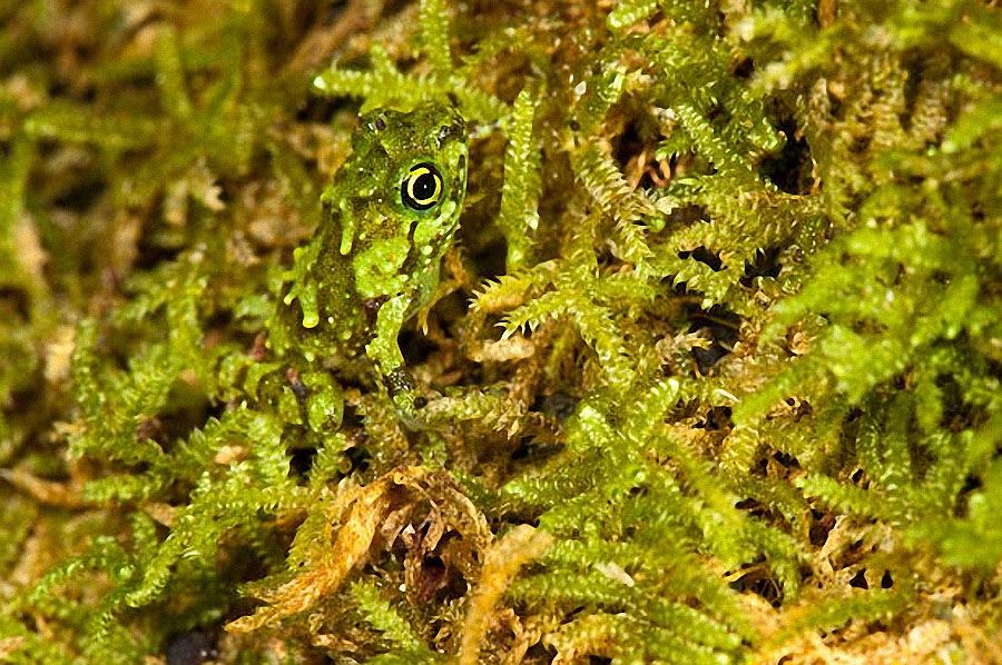 Или скрывается под мхом, но вероятность быть съеденной повышается из-за числа хищников, которые не прочь полакомится ими.