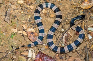 Описание: Эти змеи обычно тонкие, с угольно-черной спинной стороной, серым животом и белым подбородком.
