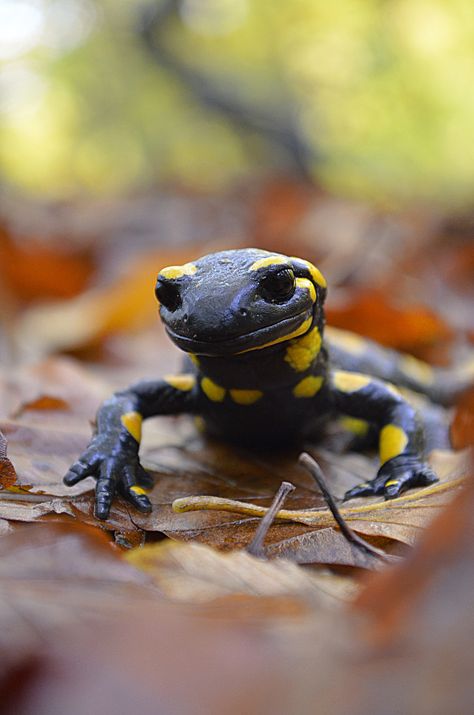 Это очень яркая, эффектная ящерица. У нее черная окраска с желтыми пятнами, которые образуют интересные узоры. А сама ящерица совсем небольшая — всего 20 сантиметров, и чем-то напоминает лягушку. Хотя лапки саламандры и не имеют перепонок.