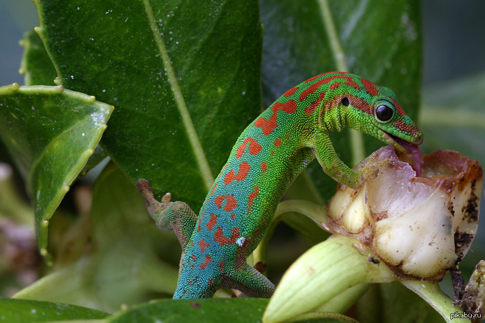Токайский геккон — это ночная рептилия, принадлежащая к роду Gekko. Он в основном встречается на азиатском континенте, а также на некоторых островах в Тихом океане. По сравнению с другими видами гекконов, у него крепкое тело, большая голова и сильные конечности и челюсти. Токай — большая ящерица размером от 30 до 35 сантиметров. Хотя он маскируется, чтобы слиться с цветом окружающей среды, он обычно серый с красными пятнами.Его тело имеет цилиндрическую форму и гладкую текстуру. Токайцы имеют половой диморфизм, самцы ярче самок. Питаются насекомыми и другими мелкими позвоночными животными. Сильные челюсти позволяют им сокрушать экзоскелет насекомых.