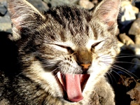 Кот, сидящий с высунутым языком и приоткрытым ртом, обозначает, что он сосредоточен на охоте за мышкой или ему жарко, или его застали во время кражи со стола. Выглядит это довольно забавно, если конечно это не заболевание.