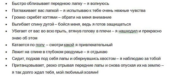 Эти намерения являются общими для всех кошек и соответствуют их настроению или душевному состоянию, но это не единственные общие для всех кошек намерения.
