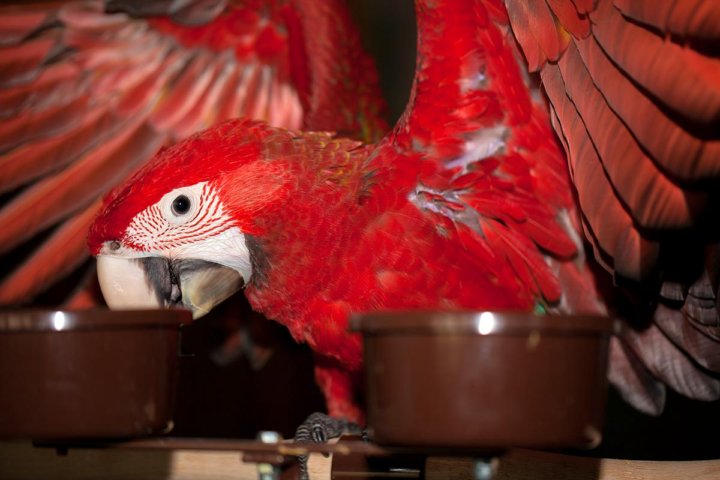 Еда для араДля содержания таких попугаев потребуется большая и просторная клетка, минимум 60х90 см. Зеленокрылые ара тише, чем многие другие представители этого семейства, но все же, мы бы рекомендовали поместить клетку в комнату, откуда шум не будет слышен соседям.