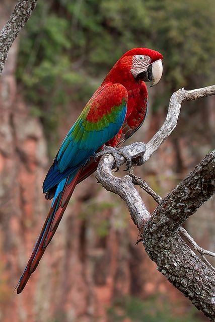 Зеленокрылый или Красно-зеленый ара (Ara chloroptera) являются наиболее распространенными из крупных ара и широко распространены в лесах Южной Америки.