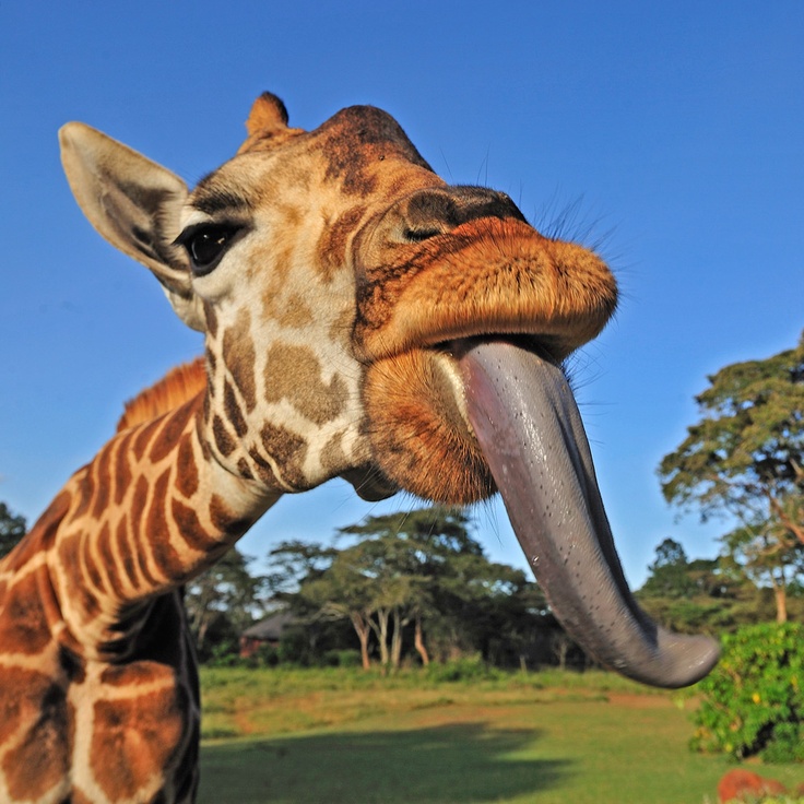 Язык жирафа имеет колоссальную длину от 18 до 20 дюймов для доступа к труднодоступным листьям. Он также сине-черного цвета, что может уберечь язык от солнечных ожогов. Разговор о крутой адаптации.