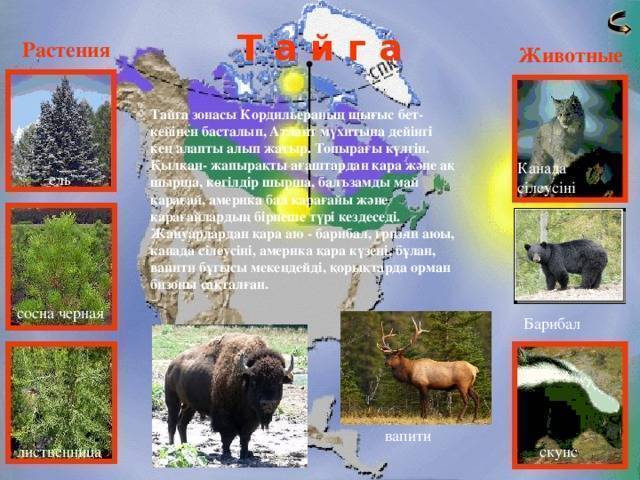 Тайга является домом для нескольких насекомых, птиц, млекопитающих и рептилий. В то время как летом в тайге теплее, температура поднимается до 68 F (20 C), зимой температура падает примерно до -58 F (-50 C), что приводит к широкомасштабной миграции видов, обитающих в таежном биоме.