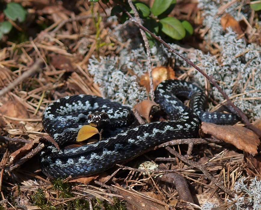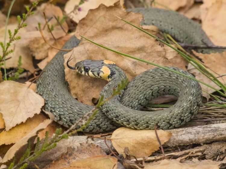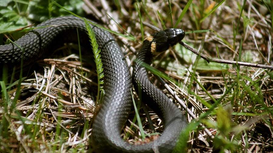 Окраска обыкновенной подвязочной змеи весьма разнообразна, но лучшим отличительным признаком является полоса посередине спины змеи.