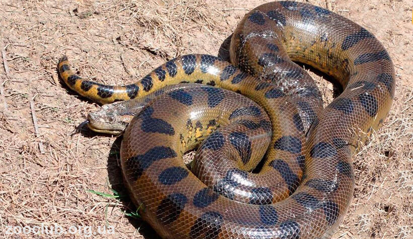 Парагвайская или желтая анаконда. Это не очень крупный вид, всего-то около трёх метров.