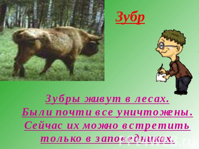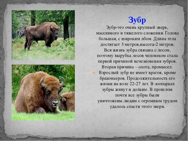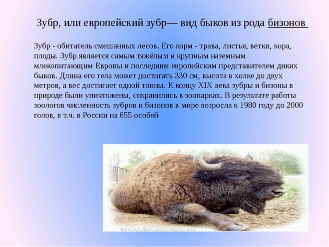 Сообщение по окружающему миру на тему «Животные Красной книги России — зубр»