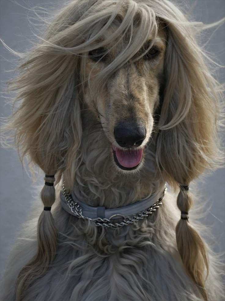 Поскольку шерсть афганской борзой должна развиваться естественным путем, шерсть не должна соприкасаться с ножницами.