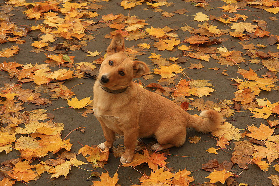 Собака осенью