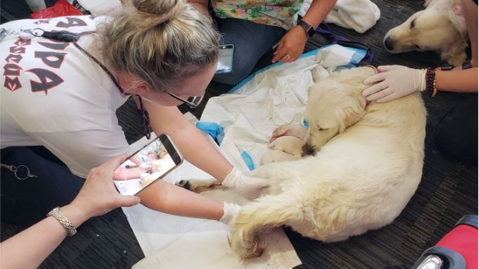 Предположим, вы обнаружили, что собака уже находится в процессе родов.