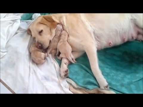 После того, как все родились, были вылизаны матерью или же вымыты вами, уложите их рядом с сосками суки. После рождения на свет им нужно поесть и набраться сил.