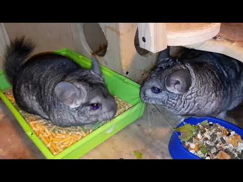 Вашей шиншилле также понадобится корм (гранулы, свежие фрукты и овощи), лакомства, пыль для купания, сено Тимоти и жевательные игрушки.